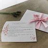 Convite com envelope em papel branco texturado de 180gr., personalizado.
